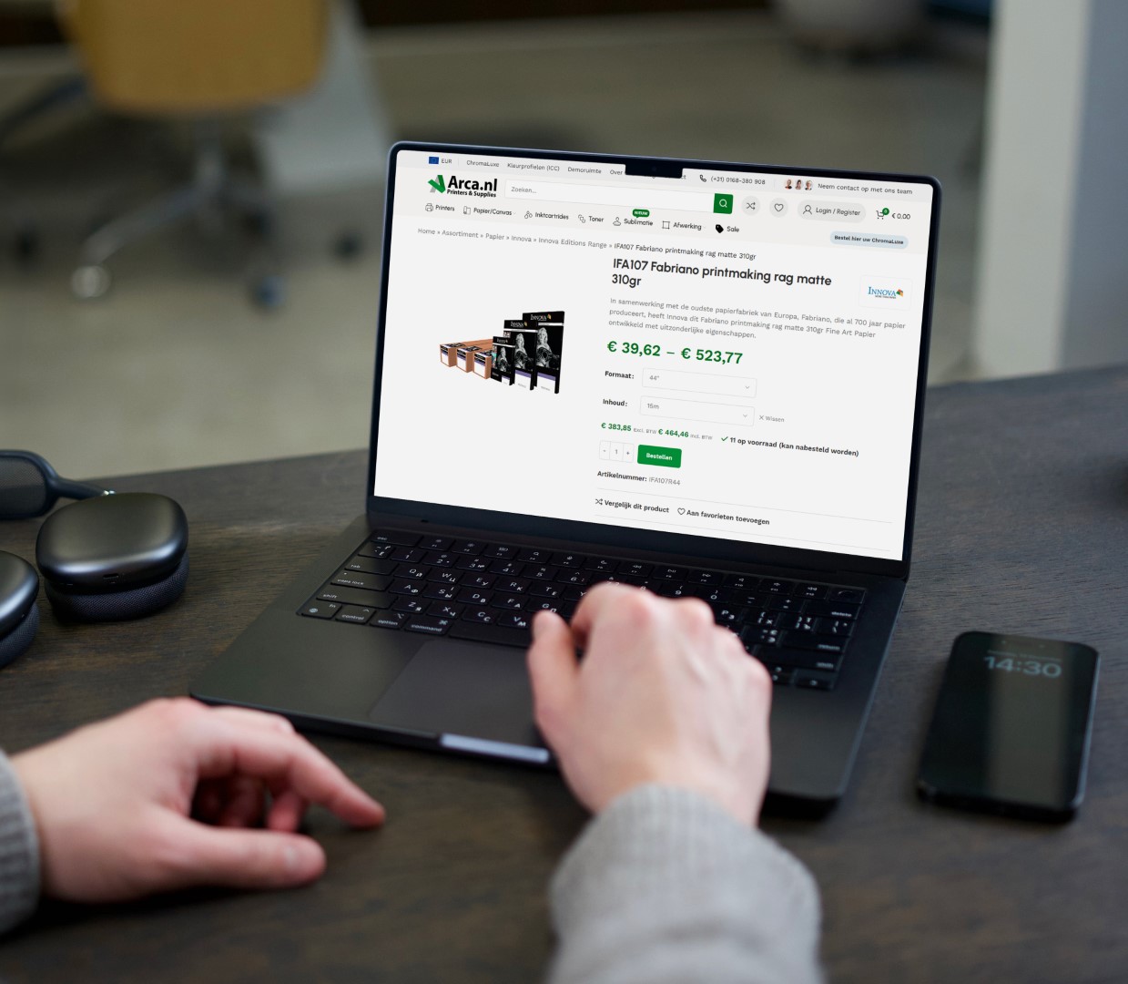 Zo zijn ze de echte specialisten in grootformaat Epson en Canon printers en daarnaast Europees Importeur en distributeur van Innova. Na al die jaren werd het tijd om ook de webshop te moderniseren, waarbij wij het proces van de overgang en de ontwikkeling op ons namen.