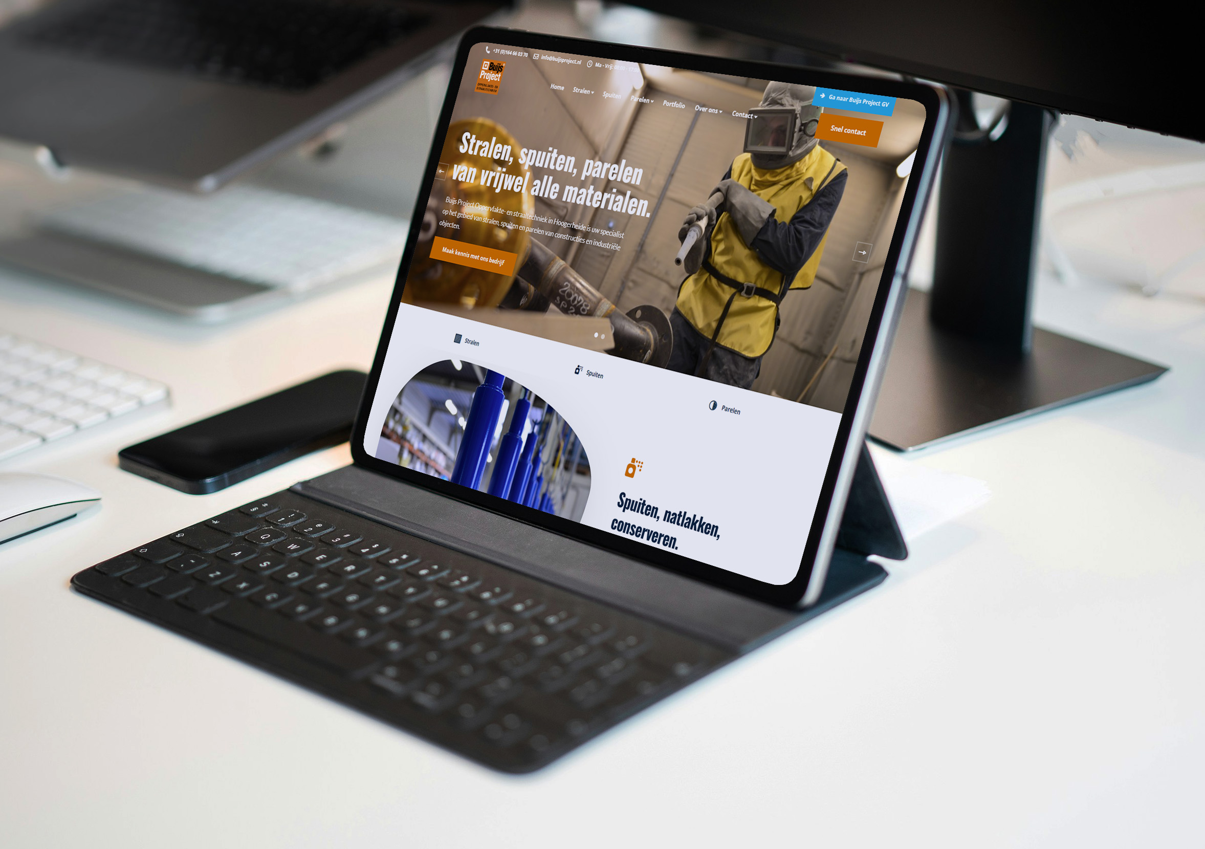 Buijs Project Oppervlakte- en Straaltechniek is de specialist op het gebied van stralen, spuiten en parelen van constructies en industriële objecten. Van handmatig stralen in straalcabines tot machinale verwerking en conserveren door middel van natlakken of coaten in de verfspuitcabine.