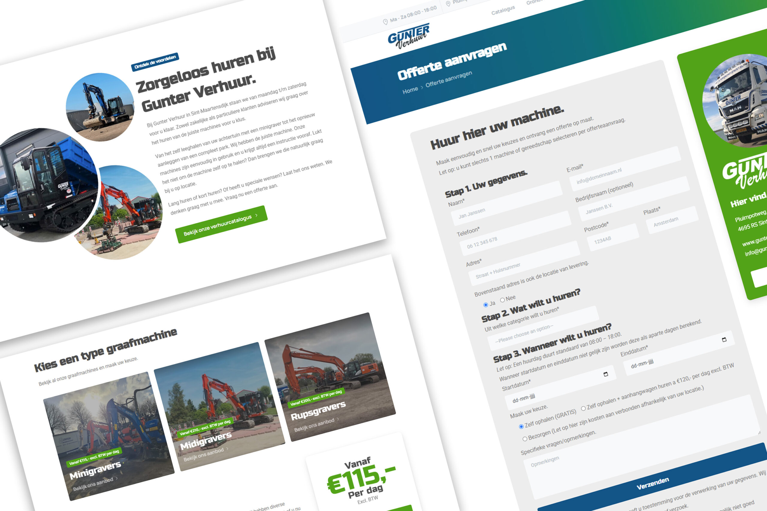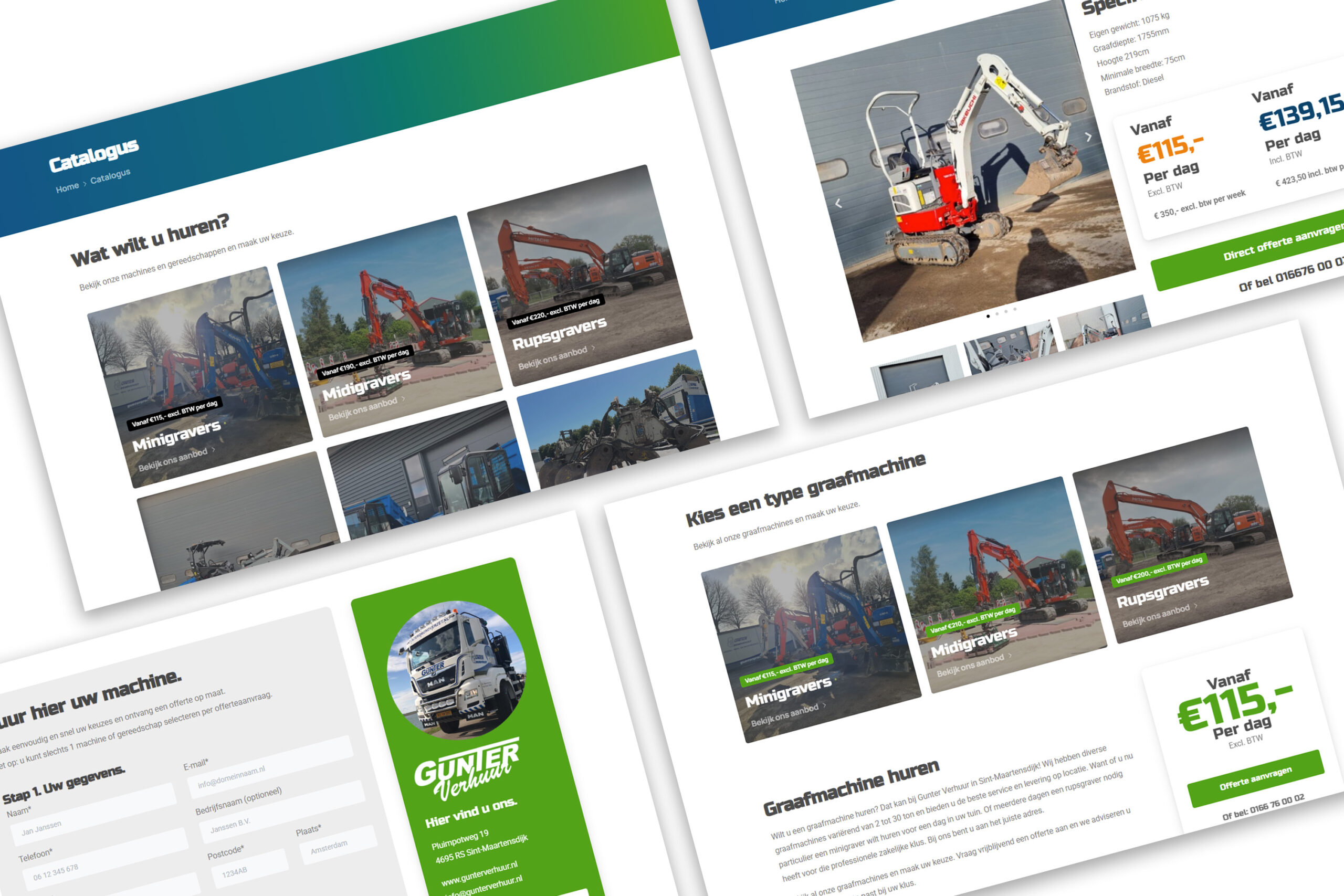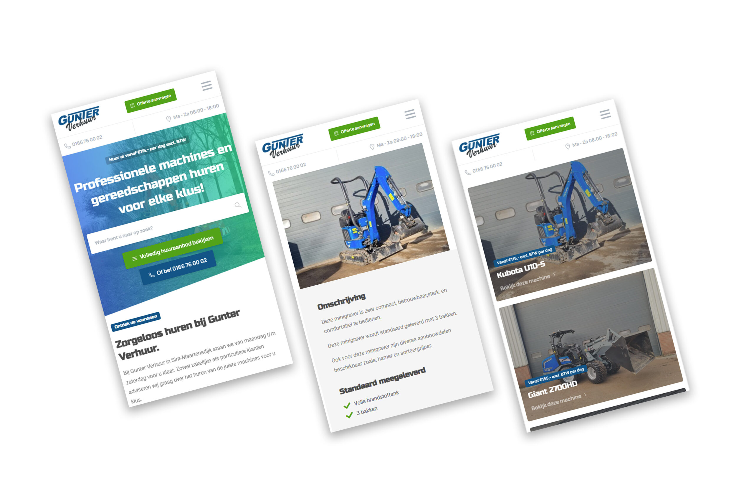 Wat is er nu fijner dan direct vanaf de bouwplaats de juiste machine te huren. Grondwerk gebeurt altijd op locatie. Door de website zo in te richten dat deze geschikt is voor mobiele apparaten kan er direct bekeken worden of Gunter de juiste machine heeft en heeft men direct de prijsinformatie inzichtelijk.